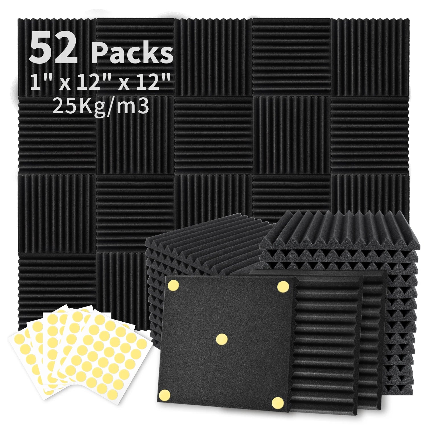 52 Pack Acoustic Foam Panels 1" x 12" x 12" Sound Proof Foam Panles Soundproofing Noise Cancelling Wedge Panels for Home Office