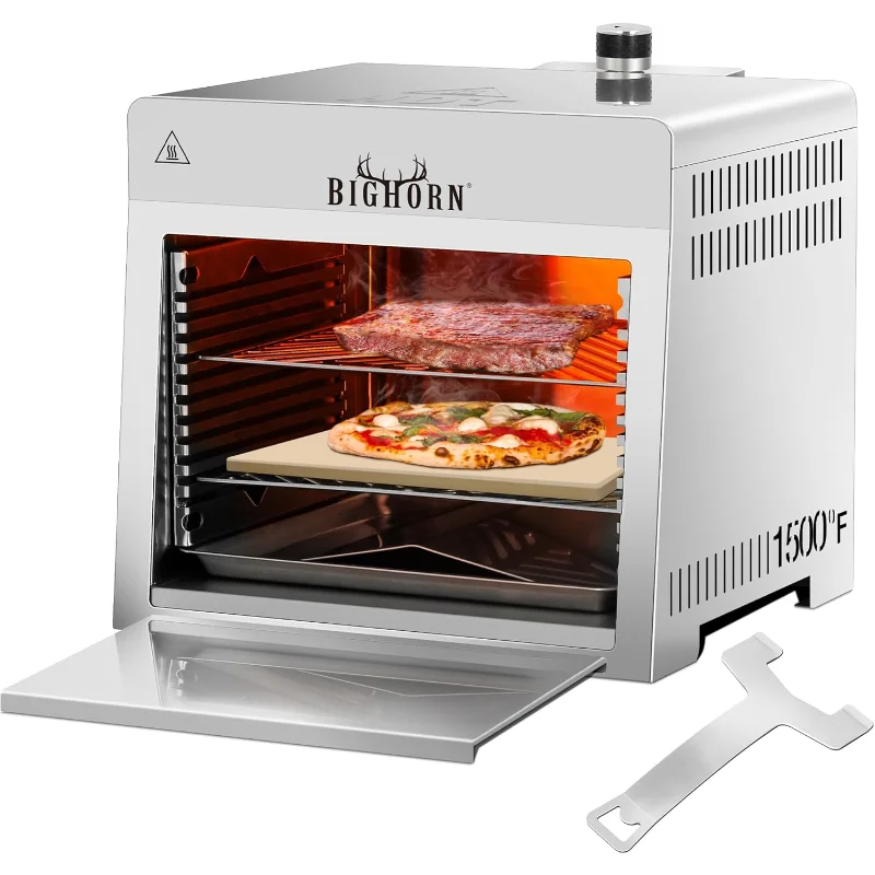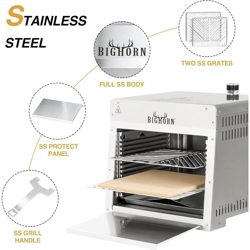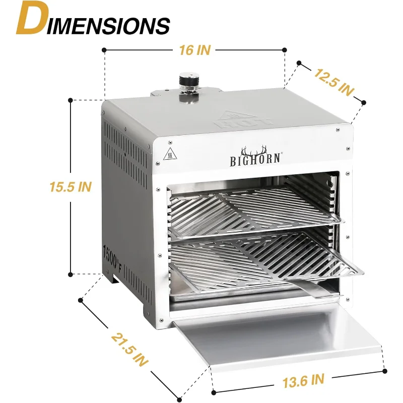 BIG HORN OUTDOORS 1500°F Small Infrared Propane Gas Grill – Portable Steak Broiler & Sear Station, Outdoor Salamander BBQ