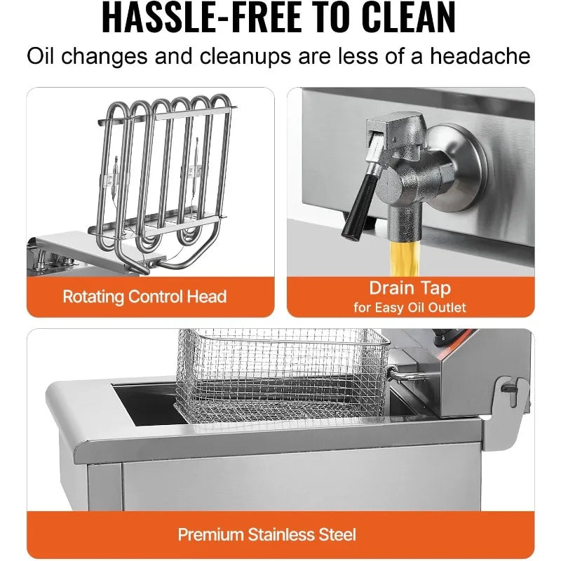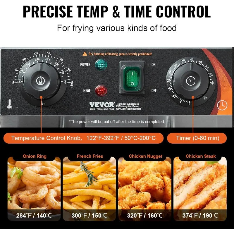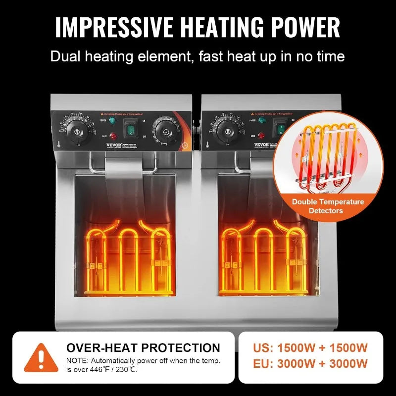 VEVOR Commercial Deep Fryer, Dual Tank 3000W Electric Countertop Fryer with Basket, 2 x 11.6Qt/11L Double Stainless Steel
